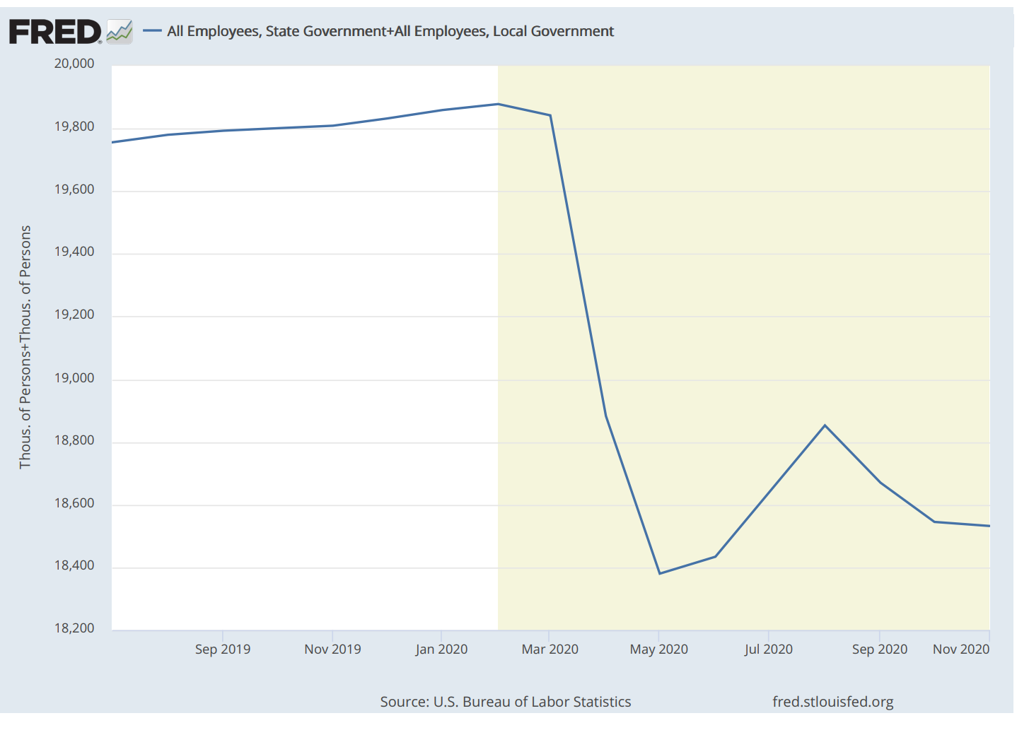 Fiscal will also be at full steam. The details of the election are still playing themselves out. Nevertheless, a steady stream of economic stimuli along with a skyrocketing debt would not be a surprise. The level of state and local employment shown in Chart 1 is a good barometer of the social tensions driving increasing Federal budgets. State and local employment has fallen dramatically, and as we saw in the Great Recession, may be slow to recover.